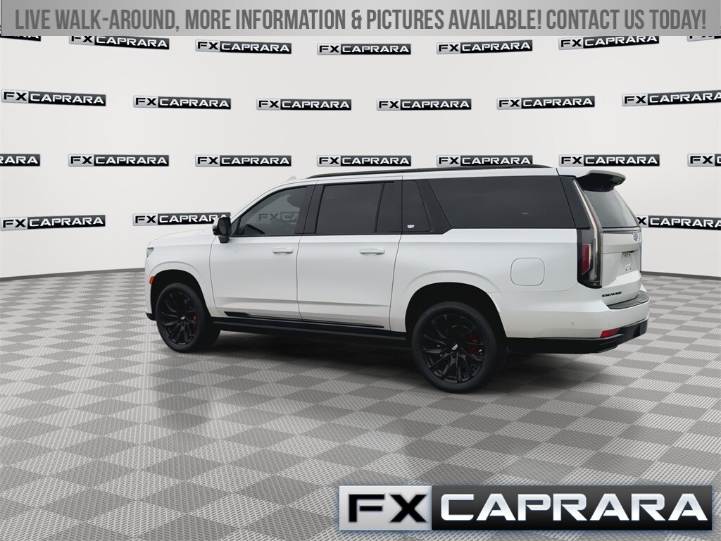 4WD, 16.9" Diagonal OLED Infotainment Screen, 2-Presets Memory For Driver Seat Adjuster, 3.23 Axle Ratio, 3rd row seats: split-bench, 4-Way Power Driver Lumbar Seat Adjuster, 4-Way Power Front Passenger Lumbar Seat Adjuster, 4-Wheel Disc Brakes, 8-Way Power Driver Seat Adjuster, 8-Way Power Front Passenger Seat Adjuster, A/V remote, ABS brakes, Adaptive Cruise Control, Adaptive suspension, Air Conditioning, Air Ride Adaptive Suspension, AKG Studio Reference 36-Speaker Audio System, Alloy wheels, AM/FM radio: SiriusXM with 360L, Apple CarPlay/Android Auto, Audio memory, Auto High-beam Headlights, Auto tilt-away steering wheel, Auto-dimming door mirrors, Automatic Seat Belt Tightening, Automatic Stop/Start, Automatic temperature control, Body-Color Door Handles, Brake assist, Bumpers: body-color, Compass, Delay-off headlights, Door auto-latch, Door Lock & Latch Shields, Driver door bin, Driver vanity mirror, Dual front impact airbags, Dual front side impact airbags, Electronic Limited-Slip Differential, Electronic Stability Control, Emergency communication system: OnStar and Cadillac connected services capable, Enhanced Automatic Emergency Braking, Enhanced Automatic Parking Assist, Floor Console w/Covered Storage, Four wheel independent suspension, Front 6-Piston Brembo Brake Upgrade (LPO), Front anti-roll bar, Front Auxiliary 12-volt Power Outlet, Front Bucket Seats, Front Center Armrest w/Storage, Front dual zone A/C, Front reading lights, Full Semi-Aniline Leather Seats, Fully automatic headlights, Garage door transmitter, Genuine wood console insert, Genuine wood dashboard insert, Genuine wood door panel insert, Glass Breakage Sensor, Gloss Black Escalade Nameplate (LPO), HD Radio, Headphones, Heads-Up Display, Heated & Ventilated Driver & Front Passenger Seats, Heated door mirrors, Heated Driver & Front Passenger Seats, Heated front seats, Heated rear seats, Heated steering wheel, Hitch Guidance w/Hitch View, Illuminated entry, Illuminating Front & Rear Sill Plates, Integrated Trailer Brake Controller, Leather steering wheel, Low tire pressure warning, Magnetic Ride Control Suspension, Memory seat, Monochrome Cadillac Emblems (LPO), Navigation System, Not Equipped w/Steering Column Lock, Not Equipped w/Super Cruise, Occupant sensing airbag, Onyx Package (LPO), Outside temperature display, Overhead airbag, Overhead console, Panic alarm, Passenger door bin, Passenger vanity mirror, Platinum Interior Trim, Power door mirrors, Power driver seat, Power Liftgate, Power Lumbar Massage Driver Seat, Power Lumbar Massage Front Passenger Seat, Power moonroof, Power Panoramic Tilt-Sliding Sunroof, Power passenger seat, Power steering, Power windows, Power-Retractable Assist Steps, Preferred Equipment Group 1SH, Radio data system, Radio: AM/FM/SiriusXM w/Navigation, Rain sensing wipers, Rear air conditioning, Rear anti-roll bar, Rear audio controls, Rear Camera Mirror, Rear Camera Mirror Washer, Rear Cross Traffic Alert, Rear reading lights, Rear Seat Entertainment System, Rear window defroster, Rear window wiper, Reconfigurable Full-Color Head-Up Display, Remote keyless entry, Reverse Automatic Braking, Roof rack: rails only, Running Board Assist Steps, Security system, SiriusXM w/360L, Smart Trailer Integration Indicator, Soft Closing Front & Rear Doors, Speed control, Split folding rear seat, Spoiler, Start/Stop System Disable Button, Steering wheel memory, Steering wheel mounted audio controls,