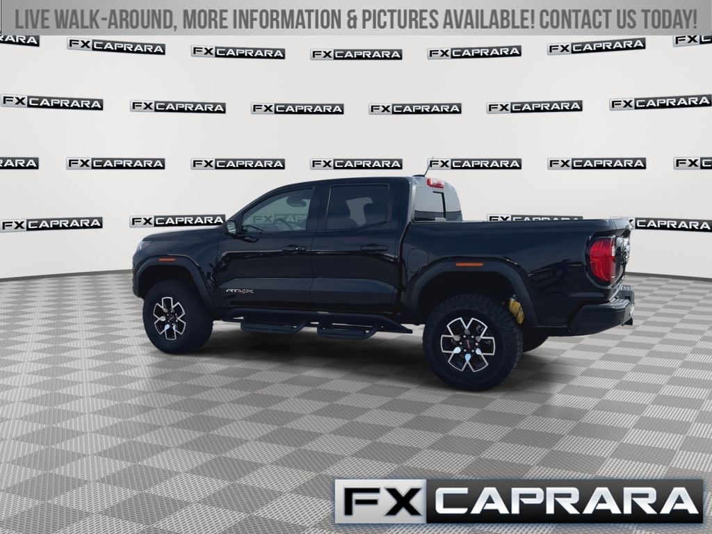 4WD, 120-Volt Bed Mounted Power Outlet, 2 1st Row USB Charge/Data Ports, 2 Rear USB Ports in Center Console (Charge-Only), 220 Amps Alternator, 3.42 Rear Axle Ratio, 4-Wheel Disc Brakes, 6-Way Power Passenger Seat Adjuster, 7 Speakers, 8-Way Power Driver Seat Adjuster, ABS brakes, Adaptive Cruise Control, Air Conditioning, Alloy wheels, AM/FM radio, Apple CarPlay/Android Auto, Auto High-beam Headlights, Auto-dimming Rear-View mirror, Automatic Emergency Braking, Automatic Stop/Start, Automatic temperature control, Brake assist, Bumpers: body-color, Canyon Pro Safety, Compass, Delay-off headlights, Driver & Front Passenger Illuminated Visors, Driver & Front Passenger Ventilated Seats, Driver door bin, Driver Memory, Driver Mode Selector, Driver Seatback Map Pocket, Driver vanity mirror, Driver-Selectable Full-Locking Front Differential, Driver-Selectable Full-Locking Rear Differential, Dual front impact airbags, Dual front side impact airbags, Dual-Zone Automatic Air Conditioning, Electronic Stability Control, EZ-Lift & Lower Tailgate, Following Distance Indicator, Forward Collision Alert, Front anti-roll bar, Front Bucket Seats, Front Center Armrest, Front dual zone A/C, Front fog lights, Front LED Fog Lamps, Front Passenger Seatback Map Pocket, Front Pedestrian & Bicyclist Braking, Front reading lights, Front wheel independent suspension, HD Surround Vision, Heads-Up Display, Heated door mirrors, Heated Driver & Front Passenger Seats, Heated front seats, Heated Power-Adjustable Outside Mirrors, Heated Steering Wheel, Heated steering wheel, Illuminated entry, Inside Rear-View Auto-Dimming Mirror, Integrated Trailer Brake Controller, IntelliBeam Automatic High Beam On/Off, Interior Overhead Courtesy Light w/Dual Reading Lamp, Lane Keep Assist w/Lane Departure Warning, Low tire pressure warning, Manual Rear-Sliding Window, Memory seat, Multicolor 6.3" Diagonal Head-Up Display, MultiStow Tailgate, Navigation system: OnStar, Occupant sensing airbag, Outside temperature display, Overhead airbag, Overhead console, Panic alarm, Passenger door bin, Passenger vanity mirror, Perforated Leather-Appointed Seat Trim, Power door mirrors, Power Driver Lumbar Control Seat Adjuster, Power driver seat, Power Inner Sliding Glass Sunroof w/Manual Shade, Power Passenger Lumbar Control Seat Adjuster, Power passenger seat, Power steering, Power windows, Preferred Equipment Group 4TX, Premium 7-Speaker Bose Sound System, Radio data system, Radio: 11.3" Diagonal Premium GMC Infotainment Sys, Rear Center Fold-Down Armrest w/2 Cupholders, Rear Cross Traffic Braking, Rear of Console 120-Volt Power Outlet, Rear Pedestrian Alert, Rear reading lights, Rear seat center armrest, Rear step bumper, Rear window defroster, Rear-Window Electric Defogger, Red Seat Belt Color, Remote keyless entry, Remote Vehicle Starter System, Removable Front & Rear Off-Road Assist Steps (LPO), Safety Alert Seat, Security system, SiriusXM w/360L, Speed control, Speed-sensing steering, Split folding rear seat, Spray-On Bedliner, Steering wheel mounted audio controls, Stop/Start System Disable Button Engine Control, Tachometer, Tailgate Keyed Cylinder Lock, Telescoping steering wheel, Tilt & Telescopic Manual Steering Column, Tilt steering wheel, Traction control, Trailering App System, Trailering Package, Trip computer, Ultrasonic Rear Park Assist, Variably intermittent wipers, Ventilated front seats, Wheels: 17" x 8" Black