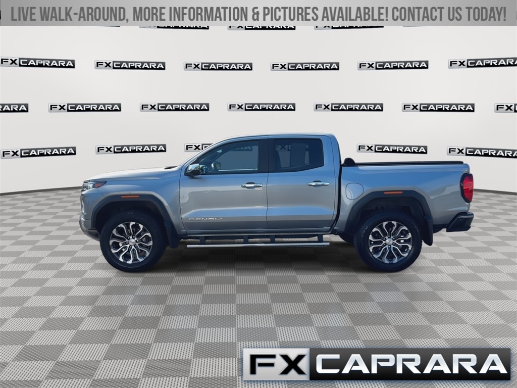 4WD, 120-Volt Bed Mounted Power Outlet, 1st & 2nd Rows All-Weather Floor Liner (LPO), 2 1st Row USB Charge/Data Ports, 2 Rear USB Ports in Center Console (Charge-Only), 220 Amps Alternator, 3.42 Rear Axle Ratio, 4-Wheel Disc Brakes, 5" Rectangular Chrome Assist Steps, 6-Way Power Passenger Seat Adjuster, 7 Speakers, 8-Way Power Driver Seat Adjuster, ABS brakes, Adaptive Cruise Control, Air Conditioning, Alloy wheels, AM/FM radio, Apple CarPlay/Android Auto, Auto High-beam Headlights, Auto-dimming Rear-View mirror, Automatic Emergency Braking, Automatic Locking Rear Differential, Automatic Stop/Start, Automatic temperature control, Blind Zone Steering Assist, Blind Zone Steering Assist w/Trailering, Brake assist, Bumpers: body-color, Canyon Pro Safety, Compass, Delay-off headlights, Driver & Front Passenger Illuminated Visors, Driver & Front Passenger Ventilated Seats, Driver door bin, Driver Memory, Driver Mode Selector, Driver Seatback Map Pocket, Driver vanity mirror, Dual front impact airbags, Dual front side impact airbags, Dual-Zone Automatic Air Conditioning, Electronic Stability Control, Emergency communication system: OnStar, Engine Block Heater, EZ-Lift & Lower Tailgate, Following Distance Indicator, Forward Collision Alert, Front anti-roll bar, Front Bucket Seats, Front Center Armrest, Front dual zone A/C, Front fog lights, Front LED Fog Lamps, Front Passenger Seatback Map Pocket, Front Pedestrian & Bicyclist Braking, Front reading lights, Front wheel independent suspension, Genuine wood dashboard insert, Genuine wood door panel insert, HD Surround Vision, Heads-Up Display, Heated door mirrors, Heated Driver & Front Passenger Seats, Heated front seats, Heated Power-Adjustable Outside Mirrors, Heated Steering Wheel, Heated steering wheel, Illuminated entry, Inside Rear-View Auto-Dimming Mirror, Integrated Trailer Brake Controller, IntelliBeam Automatic High Beam On/Off, Interior Overhead Courtesy Light w/Dual Reading Lamp, Lane Keep Assist w/Lane Departure Warning, Low tire pressure warning, Manual Rear-Sliding Window, Memory seat, Multicolor 6.3" Diagonal Head-Up Display, MultiStow Tailgate, Navigation system: OnStar, Occupant sensing airbag, Outside temperature display, Overhead airbag, Overhead console, Panic alarm, Passenger door bin, Passenger vanity mirror, Perforated Leather-Appointed Seat Trim, Power door mirrors, Power Driver Lumbar Control Seat Adjuster, Power driver seat, Power Passenger Lumbar Control Seat Adjuster, Power passenger seat, Power steering, Power windows, Preferred Equipment Group 5SB, Premium 7-Speaker Bose Sound System, ProGrade Trailering System, Radio data system, Radio: 11.3" Diagonal Premium GMC Infotainment Sys, Rear Center Fold-Down Armrest w/2 Cupholders, Rear Cross Traffic Braking, Rear of Console 120-Volt Power Outlet, Rear Pedestrian Alert, Rear reading lights, Rear seat center armrest, Rear step bumper, Rear window defroster, Rear-Window Electric Defogger, Remote keyless entry, Remote Vehicle Starter System, Safety Alert Seat, Security system, SiriusXM w/360L, Speed control, Speed-sensing steering, Split folding rear seat, Spray-On Bedliner, Steering wheel mounted audio controls, Stop/Start System Disable Button Engine Control, Tachometer, Tailgate Keyed Cylinder Lock, Telescoping steering wheel, Tilt & Telescopic Manual Steering Column, Tilt steering wheel, Traction control, Trailering App System, Trailering Packa
