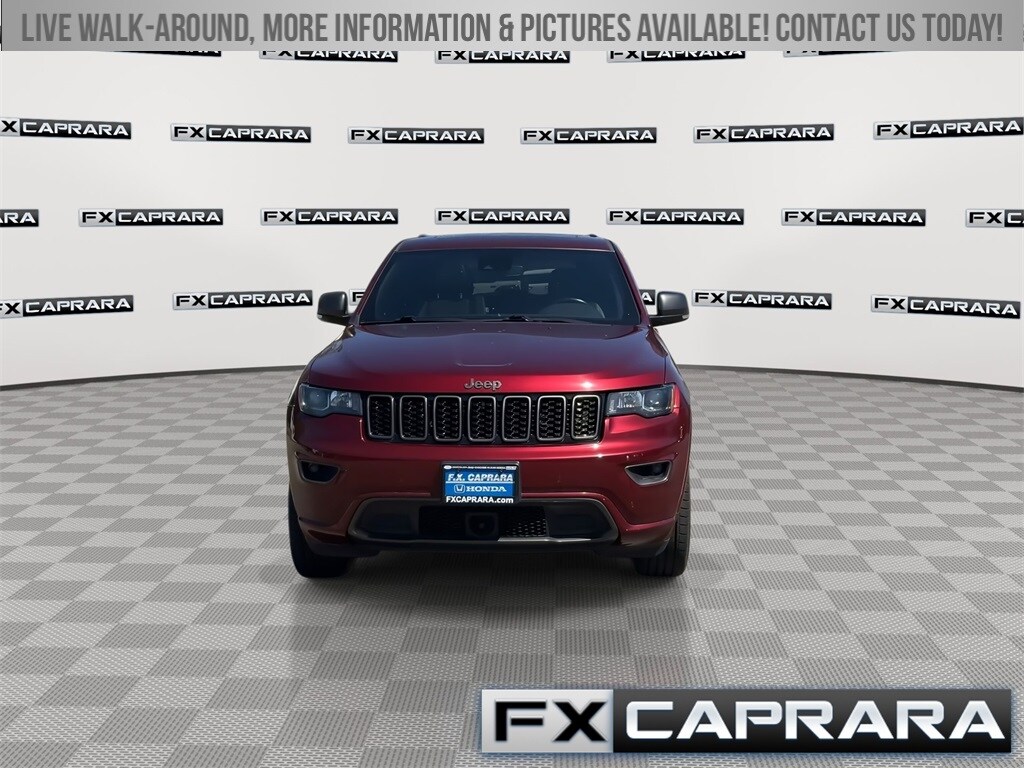 Grand Cherokee 80th Anniversary Edition, 4D Sport Utility, 4WD, Velvet Red Pearlcoat, Black Leather, Adaptive Cruise Control w/Stop, Advanced Brake Assist, Berber Floor Mats w/80th Anniversary Tag, Black Roof Molding, Body Color Claddings, Body Color Door Handles, Body Color Shark Fin Antenna, Dark Day Light Opening Moldings, Dark Headlamp Bezel Finish, Dark Lens Taillamps, Front Accent/Body Color Fascia, Full Speed FWD Collision Warn Plus, GPS Navigation, Granite Crystal Exterior Accents, Granite Crystal Exterior Badging, Granite Crystal Exterior Mirror Caps, Granite Crystal/Black Grille, Jeep 80th Anniversary Badges, Jeep 80th Anniversary Edition, Lane Departure Warning Plus, Leather Trimmed Bucket Seats (JY), LT. Tungsten Interior Accent Stitching, Memory seat, MOPAR Cargo Area Liner, MOPAR Interior Protection Group, MOPAR Slush Mats, Navigation System, Parallel & Perp Park Assist w/Stop, Piano Black/Anod. Gunmetal Interior Accents, Power driver seat, Power steering, Quick Order Package 2BK 80th, Rain Sensitive Windshield Wipers, Rear Accent/Body Color Fascia, Wheels: 20" x 8.0" Granite Crystal Aluminum.