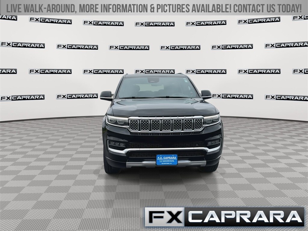 19 Speakers, 3.92 Rear Axle Ratio, 3rd row seats: bench, 4-Wheel Disc Brakes, ABS brakes, Active Driving Assist System, Adjustable pedals, Advanced Security Alert System, Air Conditioning, Alloy wheels, AM/FM radio: SiriusXM with 360L, Anti-whiplash front head restraints, Audio memory, Auto High-beam Headlights, Auto-dimming door mirrors, Auto-dimming Rear-View mirror, Auto-leveling suspension, Automatic temperature control, Body Color Roof, Brake assist, Bumpers: body-color, Compass, Convenience Group III, Delay-off headlights, Driver door bin, Driver vanity mirror, Driver's Seat Mounted Armrest, Dual front impact airbags, Dual front side impact airbags, Electronic Stability Control, Four wheel independent suspension, Front anti-roll bar, Front Bucket Seats, Front Center Armrest w/Storage, Front dual zone A/C, Front fog lights, Front Passenger Interactive Display, Front reading lights, Fully automatic headlights, Garage door transmitter, Genuine wood console insert, Genuine wood dashboard insert, Genuine wood door panel insert, Heads-Up Display, Heated door mirrors, Heated front seats, Heated rear seats, Heated steering wheel, Illuminated entry, Interior Rear Facing Camera, Intersection Collision Assist System, Knee airbag, Leather steering wheel, Leather Trimmed Bucket Seats, Low tire pressure warning, Memory seat, Navigation System, Night Vision/Pedestrian-Animal Detection, Normal Duty Suspension, Occupant sensing airbag, Outside temperature display, Overhead airbag, Overhead console, Panic alarm, Passenger door bin, Passenger seat mounted armrest, Passenger vanity mirror, Pedal memory, Power adjustable front head restraints, Power door mirrors, Power driver seat, Power Liftgate, Power moonroof, Power passenger seat, Power steering, Power windows, Quick Order Package 23S, Radio data system, Radio: Uconnect 5 Nav w/12.0" Display, Rain sensing wipers, Rear air conditioning, Rear anti-roll bar, Rear dual zone A/C, Rear reading lights, Rear seat center armrest, Rear window defroster, Rear window wiper, Reclining 3rd row seat, Remote keyless entry, Security system, Speed control, Speed-sensing steering, Speed-Sensitive Wipers, Split folding rear seat, Steering wheel memory, Steering wheel mounted audio controls, Tachometer, Telescoping steering wheel, Tilt steering wheel, Traction control, Trip computer, Turn signal indicator mirrors, Two Tone Paint Group, Variably intermittent wipers, Ventilated front seats, Voltmeter, Wheels: 22" x 9.0" Premium 1 Aluminum.