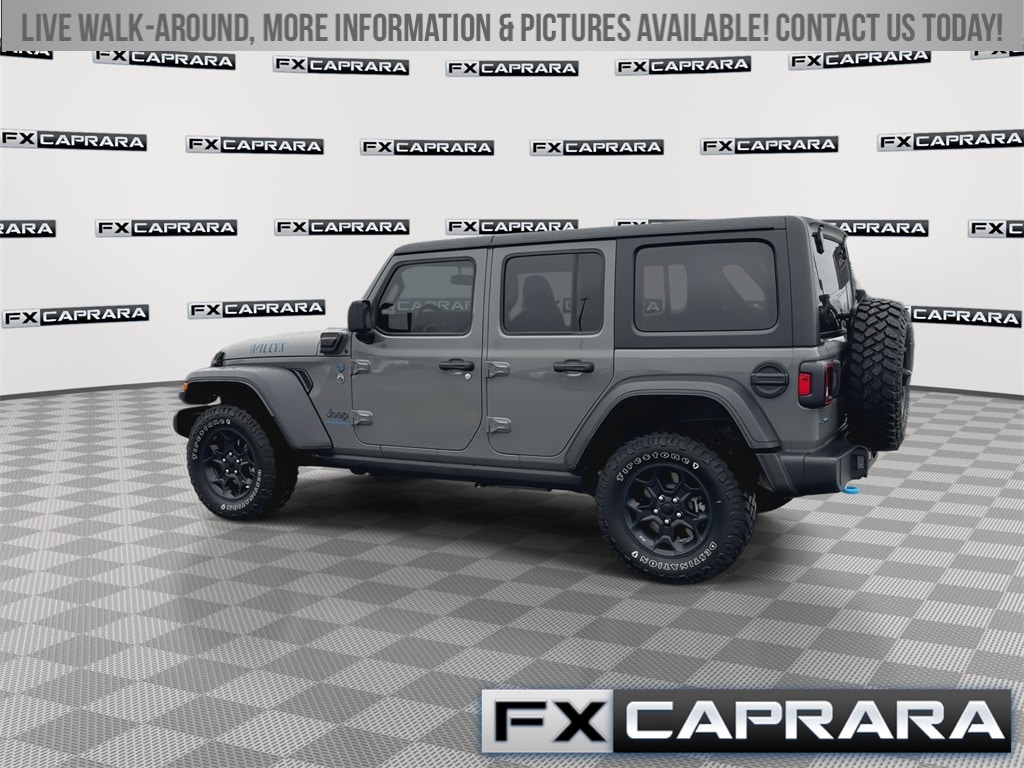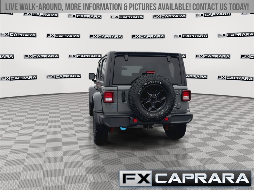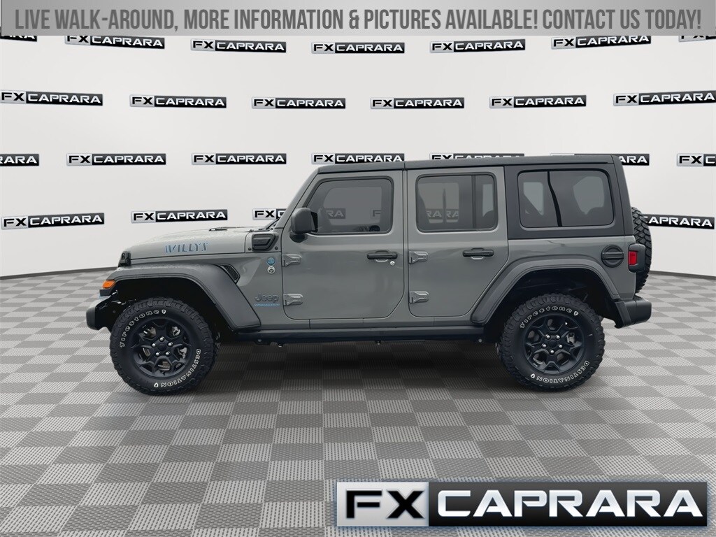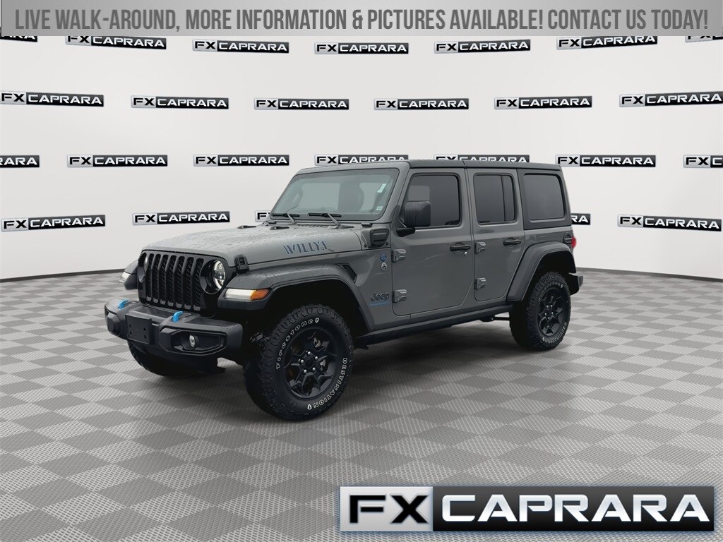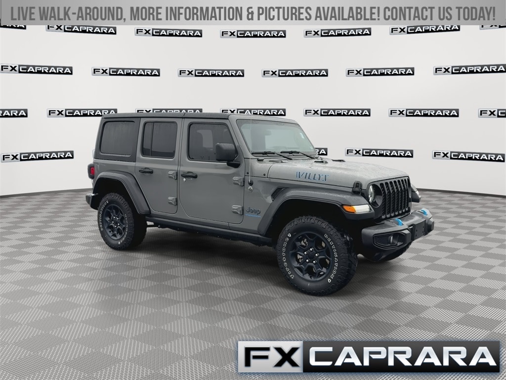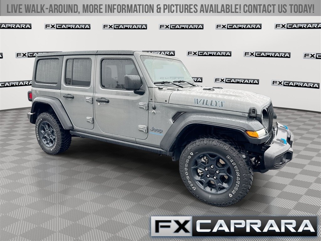 2.0L I4 DOHC, 3.73 Rear Axle Ratio, 4-Wheel Disc Brakes, 4G LTE Wi-Fi Hot Spot, 4xe 4-Wheel Drive Swing Gate Decal, 9 Speakers, 97 MPH Vehicle Max Speed Calibration, ABS brakes, Air Conditioning, Alloy wheels, AM/FM radio: SiriusXM, Anti-Spin Differential Rear Axle, Apple CarPlay, Apple CarPlay/Android Auto, Automatic temperature control, Black 3-Piece Hard Top, Black Grille, Brake assist, Cloth Low-Back Bucket Seats, Cold Weather Group, Compass, Convenience Group, Delay-off headlights, Driver door bin, Driver vanity mirror, Dual front impact airbags, Dual front side impact airbags, Electronic Stability Control, Emergency communication system: SiriusXM Guardian, Front anti-roll bar, Front Bucket Seats, Front Center Armrest w/Storage, Front dual zone A/C, Front fog lights, Front LED Fog Lamps, Front MOPAR Grab Handles, Front reading lights, Fully automatic headlights, Google Android Auto, GPS Antenna Input, Heated door mirrors, Illuminated entry, Integrated Center Stack Radio, Integrated roll-over protection, Integrated Voice Command w/Bluetooth, LED Headlamp & Fog Lamp Group, LED Premium Reflector Headlamps, Low tire pressure warning, Molded-In-Color Fender Flares (2-Piece), MOPAR All-Weather Floor Mats, MOPAR Grab Handle Kit, Normal Duty Suspension, Occupant sensing airbag, Outside temperature display, Panic alarm, ParkView Rear Back-Up Camera, Passenger door bin, Passenger vanity mirror, Power door mirrors, Power steering, Power windows, Quick Order Package 29W Willys, Radio data system, Radio: Uconnect 4 w/7" Display, Radio: Uconnect 4C Nav w/8.4" Display, Rear anti-roll bar, Rear MOPAR Grab Handles, Rear reading lights, Remote keyless entry, Remote Start System, Security system, Speed control, Split folding rear seat, Steering wheel mounted audio controls, Tachometer, Telescoping steering wheel, Tilt steering wheel, Traction control, Trip computer, Universal Garage Door Opener, USB Host Flip, Variably intermittent wipers, Voltmeter, Wheels: 17" x 7.5" Black Aluminum, Willys, Willys 4xe Hood Decal, 2.0L I4 DOHC.