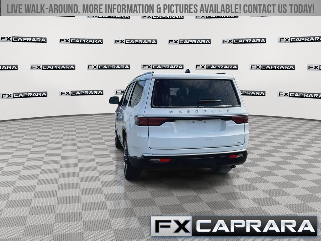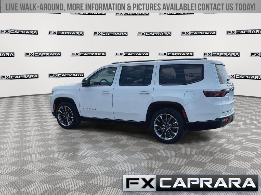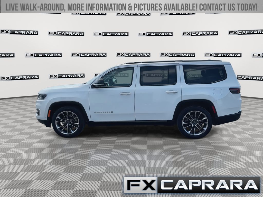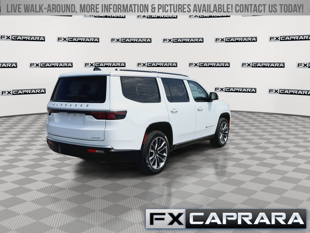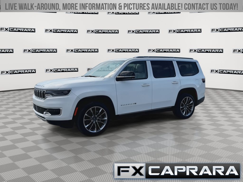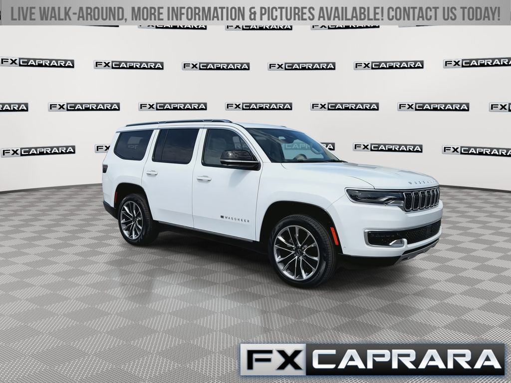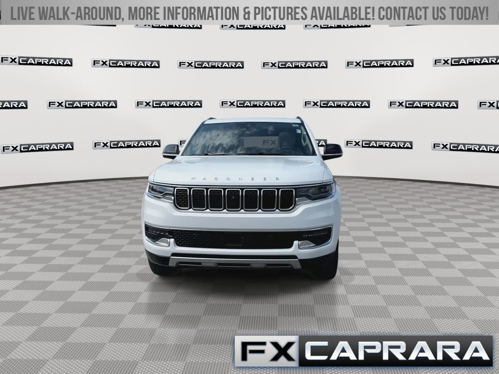 10 Speakers, 19 Speaker McIntosh Audio System, 2nd Row Manual Window Shades, 3 Panel Sunroof, 3.55 Rear Axle Ratio, 3rd row seats: bench, 4-Wheel Disc Brakes, 40/20/40 2nd Row Bench Power Tip/Slide, 8-Passenger Seating, ABS brakes, Adjustable pedals, Adjustable Roof Rail Crossbars, Air Conditioning, Alloy wheels, AM/FM radio: SiriusXM with 360L, Anti-whiplash front head restraints, Apple CarPlay/Android Auto, Audio memory, Auto High-beam Headlights, Auto-dimming door mirrors, Auto-dimming Rear-View mirror, Auto-leveling suspension, Automatic temperature control, Brake assist, Bumpers: body-color, Cargo Cover, Compass, Convenience Group I, Delay-off headlights, Driver door bin, Driver vanity mirror, Driver's Seat Mounted Armrest, Drowsy Driver Detection, Dual front impact airbags, Dual front side impact airbags, Electronic Stability Control, Emergency communication system: Wagoneer Connect, Exterior Parking Camera Rear, Flexible Seating Group, Four wheel independent suspension, Front anti-roll bar, Front Bucket Seats, Front Center Armrest w/Storage, Front dual zone A/C, Front fog lights, Front reading lights, Full Length Floor Console, Fully automatic headlights, Garage door transmitter, Genuine wood console insert, Genuine wood dashboard insert, Genuine wood door panel insert, Heated door mirrors, Heated front seats, Heated rear seats, Heated steering wheel, Illuminated entry, Intersection Collision Assist System, Knee airbag, Leather Trimmed Bucket Seats, Low tire pressure warning, Luxury Front & Rear Floor Mats, Memory seat, Navigation System, Normal Duty Suspension, Occupant sensing airbag, Outside temperature display, Overhead airbag, Overhead console, P&P Park & Unpark Assist w/Stop System, Panic alarm, Passenger door bin, Passenger seat mounted armrest, Passenger vanity mirror, Pedal memory, Power adjustable front head restraints, Power Deployable Running Boards, Power door mirrors, Power driver seat, Power Liftgate, Power passenger seat, Power steering, Power windows, Premium Group I, Quick Order Package 25N, Radio data system, Radio: Uconnect 5 Nav w/10.1" Display, Rain sensing wipers, Rear air conditioning, Rear anti-roll bar, Rear dual zone A/C, Rear reading lights, Rear seat center armrest, Rear window defroster, Rear window wiper, Reclining 3rd row seat, Remote keyless entry, Reversible Carpet/Vinyl Cargo Mat, Security system, Side Distance Warning, Speed control, Speed-sensing steering, Speed-Sensitive Wipers, Split folding rear seat, Steering wheel memory, Steering wheel mounted audio controls, Surround View Camera System, Tachometer, Telescoping steering wheel, Tilt steering wheel, Traction control, Traffic Sign Recognition, Trip computer, Turn signal indicator mirrors, Variably intermittent wipers, Ventilated front seats, Voltmeter, Wheels: 22" x 9.0" Premium 3 Aluminum.