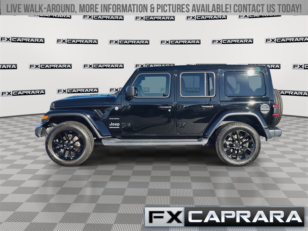 110 MPH Vehicle Max Speed Calibration, 12.3" Touchscreen Display, 3.45 Overall Top Gear Ratio, 4-Wheel Disc Brakes, 4G LTE Wi-Fi Hot Spot, 8 Speakers, ABS brakes, Air Conditioning, Alloy wheels, Alpine Premium Audio System, AM/FM radio: SiriusXM, Apple CarPlay, Apple CarPlay/Android Auto, Auto-Dimming Rear-View Mirror, Automatic temperature control, Aux Battery, Brake assist, Cloth Low-Back Bucket Seats, Compass, Connected Travel & Traffic Services, Connectivity - US/Canada, Delay-off headlights, Disassociated Touchscreen Display, Driver door bin, Driver vanity mirror, Dual front impact airbags, Dual front side impact airbags, Electronic Stability Control, Emergency communication system: Jeep Connect, Front anti-roll bar, Front Bucket Seats, Front Center Armrest w/Storage, Front dual zone A/C, Front fog lights, Front reading lights, Fully automatic headlights, Google Android Auto, GPS Navigation, HD Radio, Heated door mirrors, Heated front seats, Heated steering wheel, Heavy Duty Suspension w/Gas Shocks, Illuminated entry, Integrated Center Stack Radio, Integrated Off-Road Camera, Integrated roll-over protection, Integrated Voice Command w/Bluetooth, Low tire pressure warning, MOPAR All-Weather Floor Mats, Non-Lock Fuel Cap w/o Discriminator, Occupant sensing airbag, Outside temperature display, Overhead airbag, Panic alarm, ParkView Rear Back-Up Camera, Passenger door bin, Passenger vanity mirror, Power door mirrors, Power steering, Power Top Quarter Window Storage Bag, Power windows, Quick Order Package 22G Sahara, Radio data system, Radio: Uconnect 5 Nav w/12.3" Display, Radio: Uconnect 5 w/12.3" Display, Rear anti-roll bar, Rear reading lights, Rear Window Defroster, Rear Window Wiper/Washer, Remote keyless entry, Removable Rear Quarter Windows, Security system, Side Steps, SiriusXM Radio Service, SiriusXM w/360L, Sky 1-Touch Power Top, Speed control, Split folding rear seat, Steering wheel mounted audio controls, Stop-Start Dual Battery System, Tachometer, Technology Group, Telescoping steering wheel, Tilt steering wheel, Traction control, Trip computer, Universal Garage Door Opener, Variably intermittent wipers, Voltmeter, Wheels: 18" x 7.5" Machine/Painted Gray.