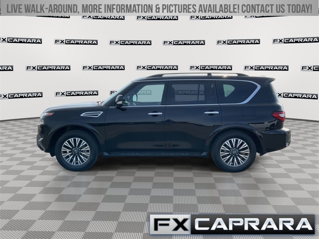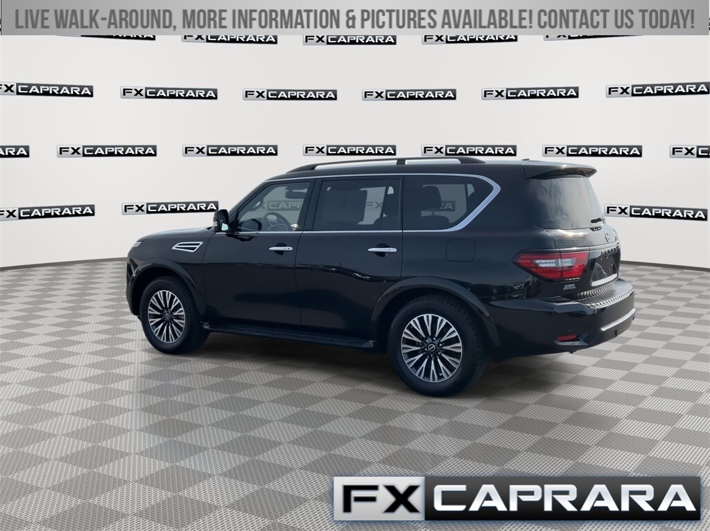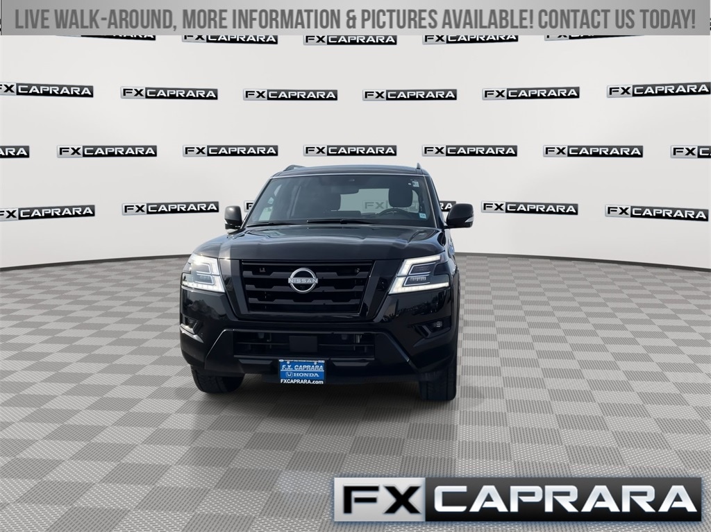 4WD, 13 Speakers, 2.94 Axle Ratio, 3rd row seats: split-bench, 4-Wheel Disc Brakes, ABS brakes, Air Conditioning, Alloy wheels, AM/FM radio: SiriusXM, Anti-whiplash front head restraints, Auto High-beam Headlights, Auto tilt-away steering wheel, Auto-dimming door mirrors, Auto-dimming Rear-View mirror, Auto-leveling suspension, Automatic temperature control, Bose 13-Speaker Premium Audio System, Brake assist, Bumpers: body-color, Delay-off headlights, Driver door bin, Driver vanity mirror, Dual front impact airbags, Dual front side impact airbags, Electronic Stability Control, Emergency communication system: NissanConnect Services, Exterior Parking Camera Rear, Four wheel independent suspension, Front anti-roll bar, Front Bucket Seats, Front Center Armrest, Front dual zone A/C, Front fog lights, Front reading lights, Fully automatic headlights, Garage door transmitter: HomeLink, Heated door mirrors, Heated Front Bucket Seats, Heated front seats, Heated steering wheel, Illuminated entry, Knee airbag, Leather Shift Knob, Leather-Appointed Seat Trim, Low tire pressure warning, Memory seat, Navigation System, NissanConnect featuring Apple CarPlay and Android Auto, Occupant sensing airbag, Outside temperature display, Overhead airbag, Overhead console, Panic alarm, Passenger door bin, Passenger vanity mirror, Power door mirrors, Power driver seat, Power Liftgate, Power moonroof, Power passenger seat, Power steering, Power windows, Premium audio system: Bose, Radio: NissanConnect w/SiriusXM, Rear air conditioning, Rear anti-roll bar, Rear reading lights, Rear seat center armrest, Rear window defroster, Rear window wiper, Reclining 3rd row seat, Remote keyless entry, Security system, Speed control, Speed-sensing steering, Speed-Sensitive Wipers, Split folding rear seat, Spoiler, Steering wheel memory, Steering wheel mounted audio controls, Tachometer, Telescoping steering wheel, Tilt steering wheel, Traction control, Trip computer, Turn signal indicator mirrors, Variably intermittent wipers, Voltmeter, Wheels: 20" x 8J Painted Alloy, 4WD.