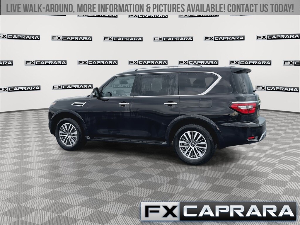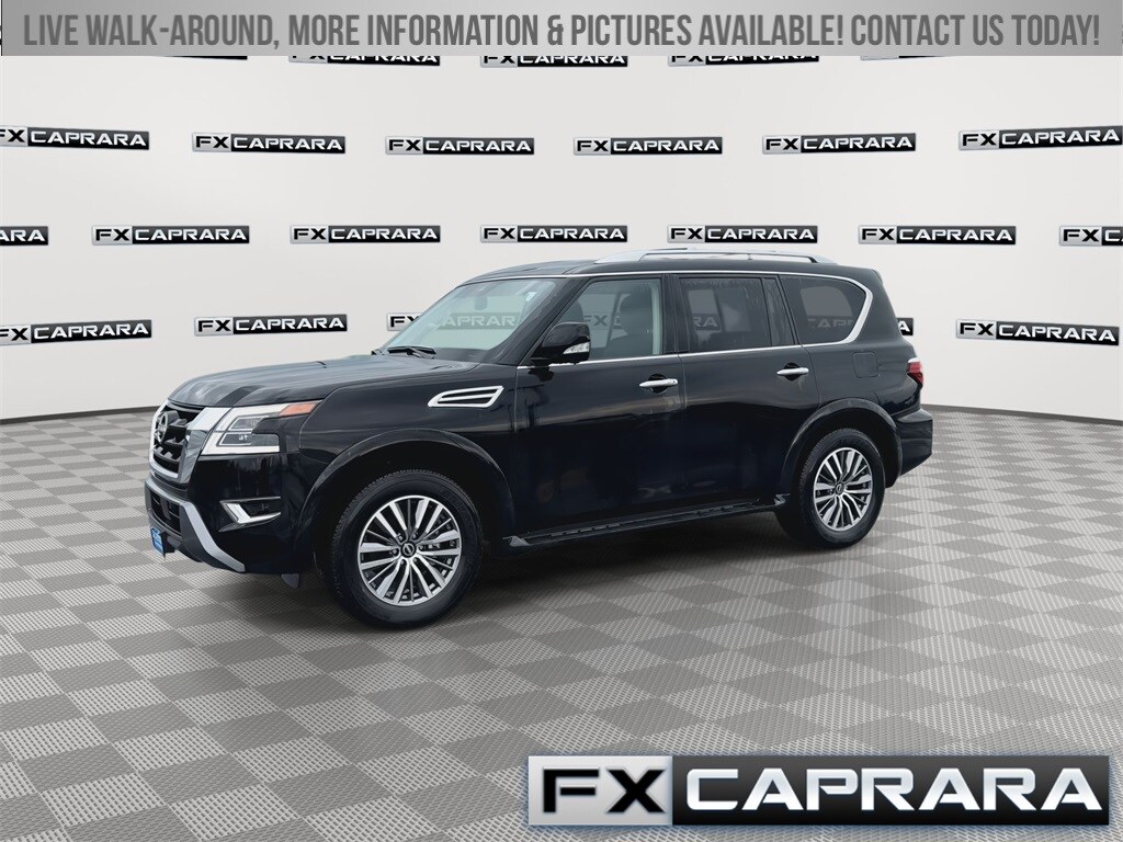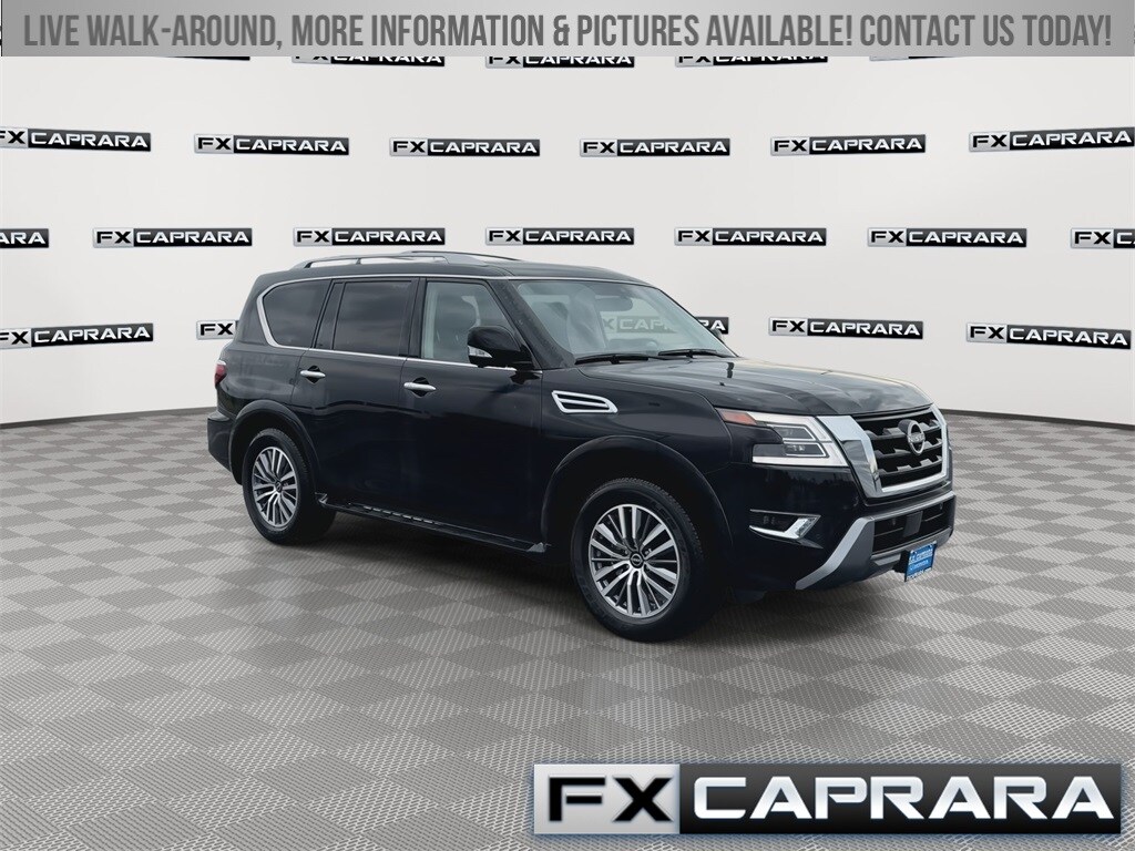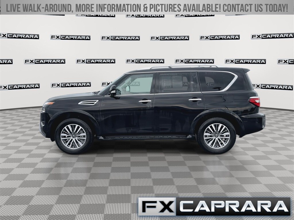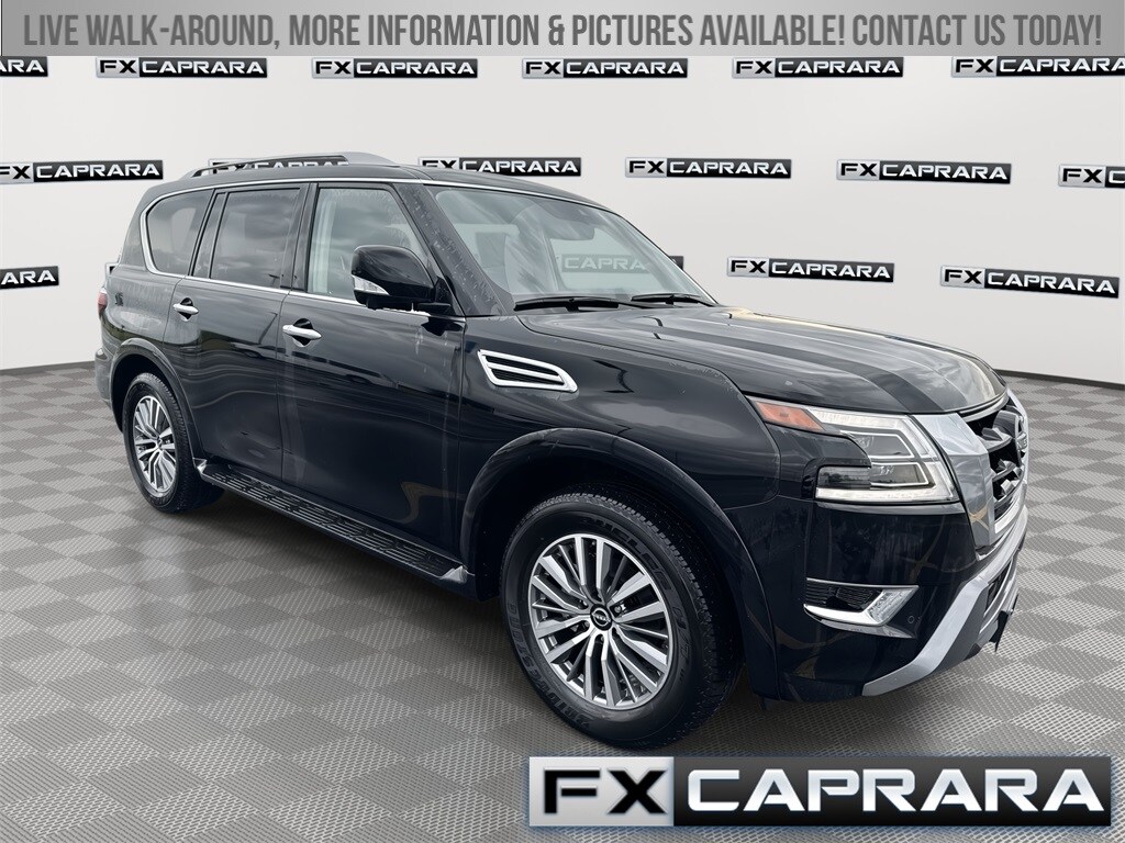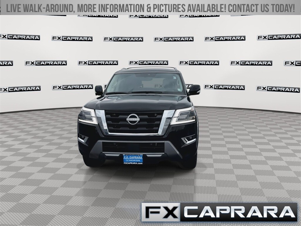 4WD, 13 Speakers, 2.937 Axle Ratio, 2nd Row Captain's Chairs, 2nd Row Center Console w/Padded Armrest, 3rd Row Carpeted Floor Mats - Captain Seat, 3rd row seats: split-bench, 4-Wheel Disc Brakes, ABS brakes, Air Conditioning, Alloy wheels, AM/FM radio: SiriusXM, Anti-whiplash front head restraints, Auto High-beam Headlights, Auto tilt-away steering wheel, Auto-dimming door mirrors, Auto-dimming Rear-View mirror, Auto-leveling suspension, Automatic temperature control, Brake assist, Bumpers: body-color, Captain's Chairs Package, Cargo Package, Delay-off headlights, Driver door bin, Driver vanity mirror, Dual front impact airbags, Dual front side impact airbags, Electronic Stability Control, Emergency communication system: NissanConnect Services, Exterior Parking Camera Rear, Four wheel independent suspension, Front anti-roll bar, Front Bucket Seats, Front Center Armrest, Front dual zone A/C, Front fog lights, Front reading lights, Fully automatic headlights, Garage door transmitter: HomeLink, Heated door mirrors, Heated Front Bucket Seats, Heated front seats, Heated steering wheel, HVAC memory, Illuminated entry, Illuminated Kick Plates, Knee airbag, Leather Shift Knob, Leather steering wheel, Leather-Appointed Seat Trim, Low tire pressure warning, Memory seat, Navigation System, Nissan USB Charging Cable Set, Occupant sensing airbag, Outside temperature display, Overhead airbag, Overhead console, Panic alarm, Passenger door bin, Passenger vanity mirror, Power door mirrors, Power driver seat, Power Liftgate, Power moonroof, Power passenger seat, Power steering, Power windows, Radio: NissanConnect w/SiriusXM, Rear air conditioning, Rear anti-roll bar, Rear reading lights, Rear seat center armrest, Rear window defroster, Rear window wiper, Reclining 3rd row seat, Remote keyless entry, Roof Rail Cross Bars - Silver, Security system, Speed control, Speed-sensing steering, Speed-Sensitive Wipers, Split folding rear seat, Spoiler, Steering wheel memory, Steering wheel mounted audio controls, Tachometer, Telescoping steering wheel, Tilt steering wheel, Traction control, Trip computer, Turn signal indicator mirrors, Variably intermittent wipers, Voltmeter, Wheels: 20" x 8J Painted Alloy, 4WD.