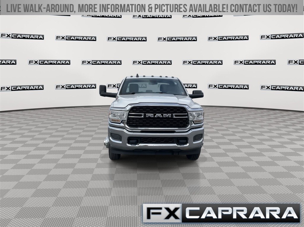 2 Way Rear Headrest Seat, 3.73 Axle Ratio, 4 Way Front Headrests, 4-Wheel Disc Brakes, 40/20/40 Split Bench Seat, 4G LTE Wi-Fi Hot Spot, 6 Speakers, 6000# Front Axle w/Hub Ext, 8.4" Touchscreen Display, ABS brakes, Active Noise Control System, Air Conditioning, AM/FM radio: SiriusXM, Apple CarPlay, Apple CarPlay/Android Auto, Bluetooth Handsfree Phone & Audio, Box & Rear Fender Clearance Lamps, Brake assist, Bright Wheel Skins, Bumpers: chrome, Center Hub, Center Stack Storage Drawer, Clearance Lamps, Cloth 40/20/40 Bench Seat, Compass, Connectivity - US/Canada, Delay-off headlights, Driver door bin, Dual front impact airbags, Dual front side impact airbags, Dual Rear Wheels, Electronic Stability Control, Electronically Controlled Throttle, For More Info, Call 800-643-2112, Front anti-roll bar, Front Armrest w/Cupholders, Front Center Armrest w/Storage, Front reading lights, Fully automatic headlights, Global Telematics Box Module (TBM), GPS Antenna Input, Heated door mirrors, Illuminated entry, Integrated Voice Command w/Bluetooth, Low tire pressure warning, Manual Adjust 4-Way Driver Seat, Manual Adjust 4-Way Front Passenger Seat, Manufacturer's Statement of Origin, Occupant sensing airbag, Outside temperature display, Overhead airbag, Overhead console, Panic alarm, ParkView Rear Back-Up Camera, Passenger door bin, Passenger vanity mirror, Power door mirrors, Power steering, Power windows, Quick Order Package 2HZ Big Horn, Radio data system, Radio: Uconnect 5 w/8.4" Display, Rear Folding Seat, Rear seat center armrest, Rear step bumper, Rear Wheelhouse Liners, Remote keyless entry, Remote Start System, Selectable Tire Fill Alert, SiriusXM Radio Service, SiriusXM Satellite Radio, Speed control, Storage Tray, Tachometer, Tilt steering wheel, Tip Start, Traction control, Trip computer, Turn signal indicator mirrors, Variably intermittent wipers, Voltmeter, Wheels: 17" x 6.0" Steel Chrome Clad, Wheels: 18" x 8.0" Steel Chrome Clad.